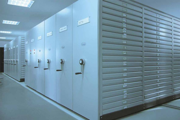 手動密集架主要由軌道、架體、底盤三部分組成,具有載量多,使用方便等特點(diǎn),主要用于檔案資料、證券憑證等的存放。