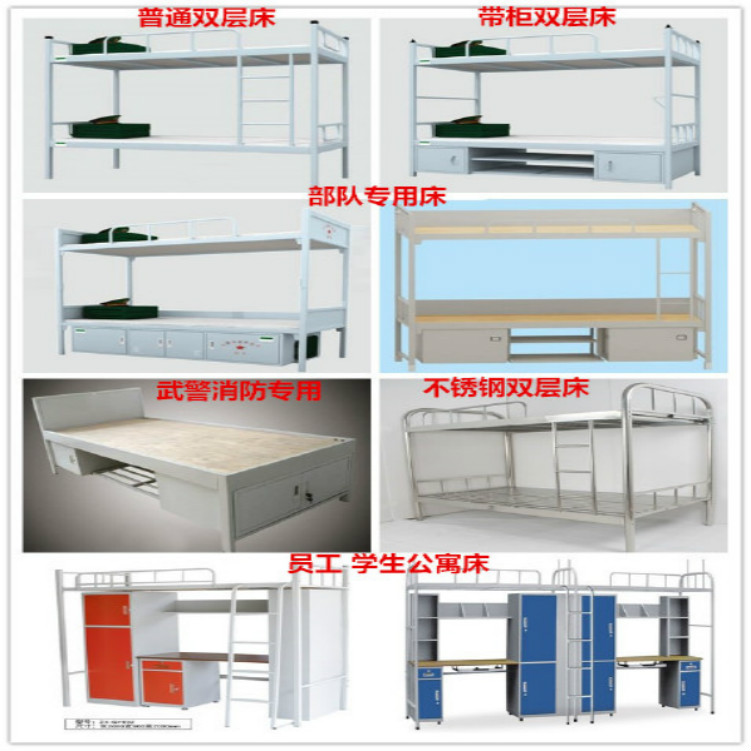 鐵架床又稱上下鋪或公寓床或上下床,廣泛運用于各集體宿舍,如:學(xué)生宿舍,單位宿舍,工地宿舍等。鐵架床工序相對簡單,分為:材料,焊接,鍍漆等。